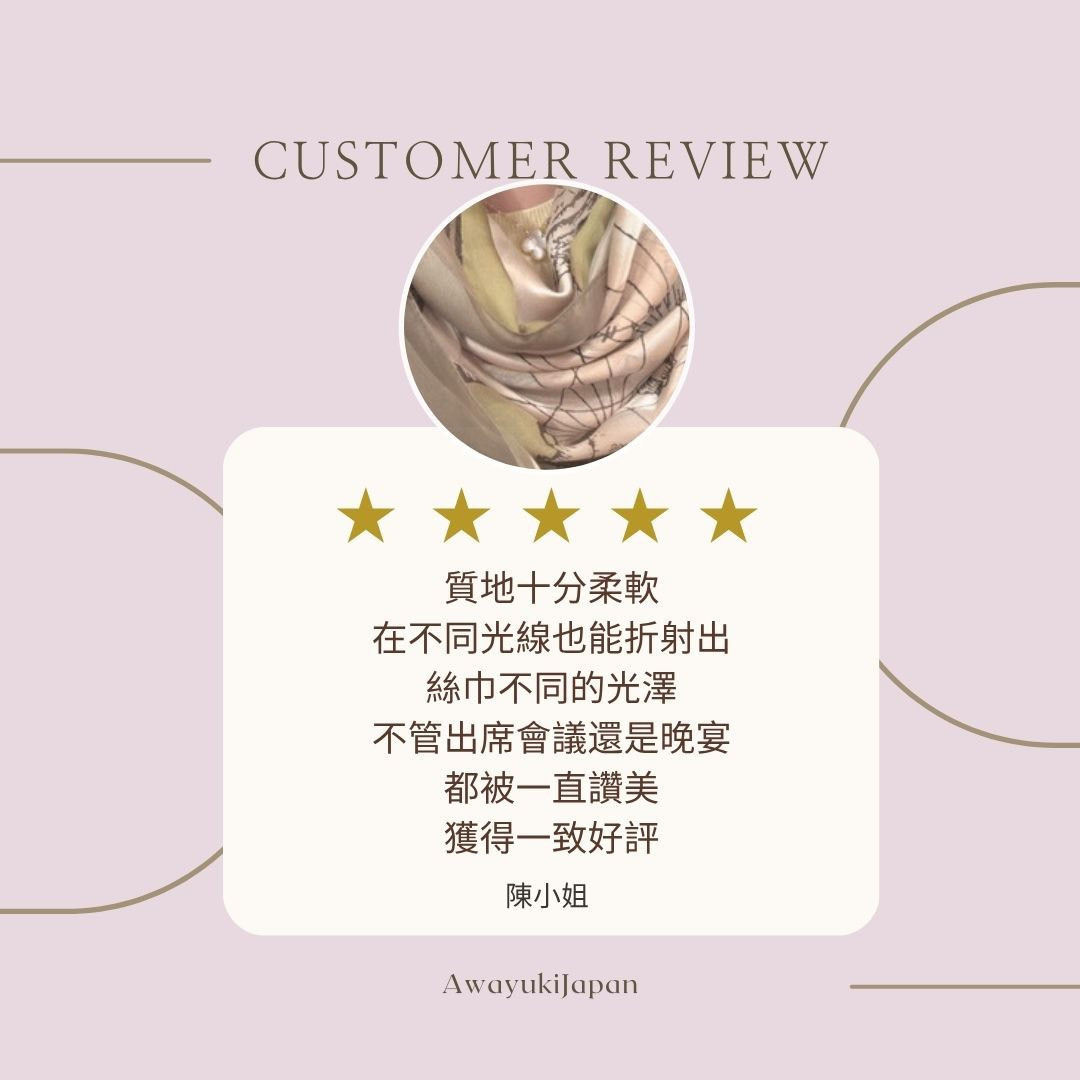 尺寸:88cm * 88cm 產地:日本 成分:100% Silk 注意事項: 照片中商品顏色會因光線及角度而略有差異, 請以實際商品為準。 商品不包含拍攝配件。