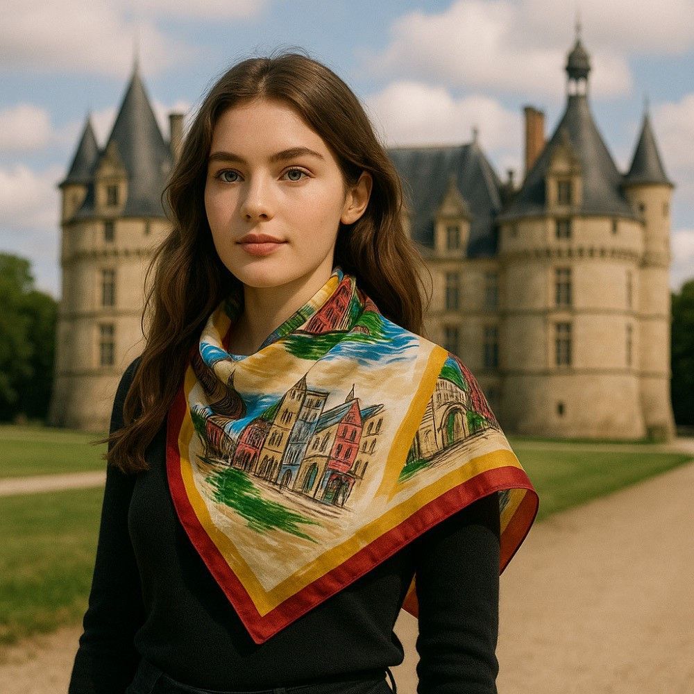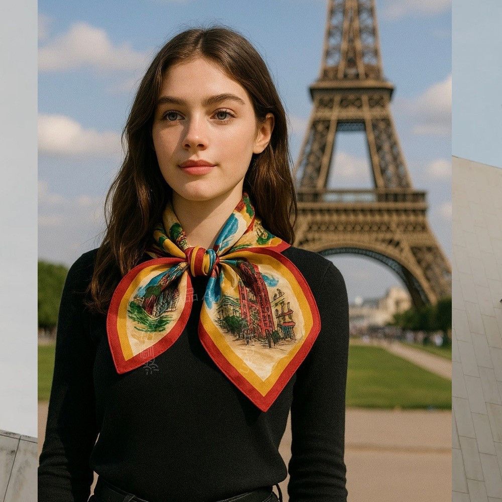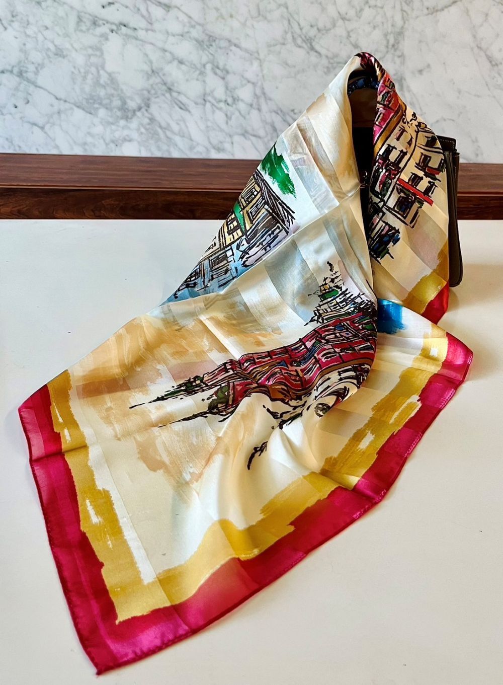 產品描述: 這是一款日式方形真絲圍巾,大道圖案採用絲緞