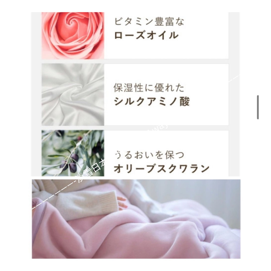 • 擁有卓越保濕力的絲胺酸鎖住水分的橄欖角鯊烯讓毛毯觸感更加柔軟,帶來溫和呵護。