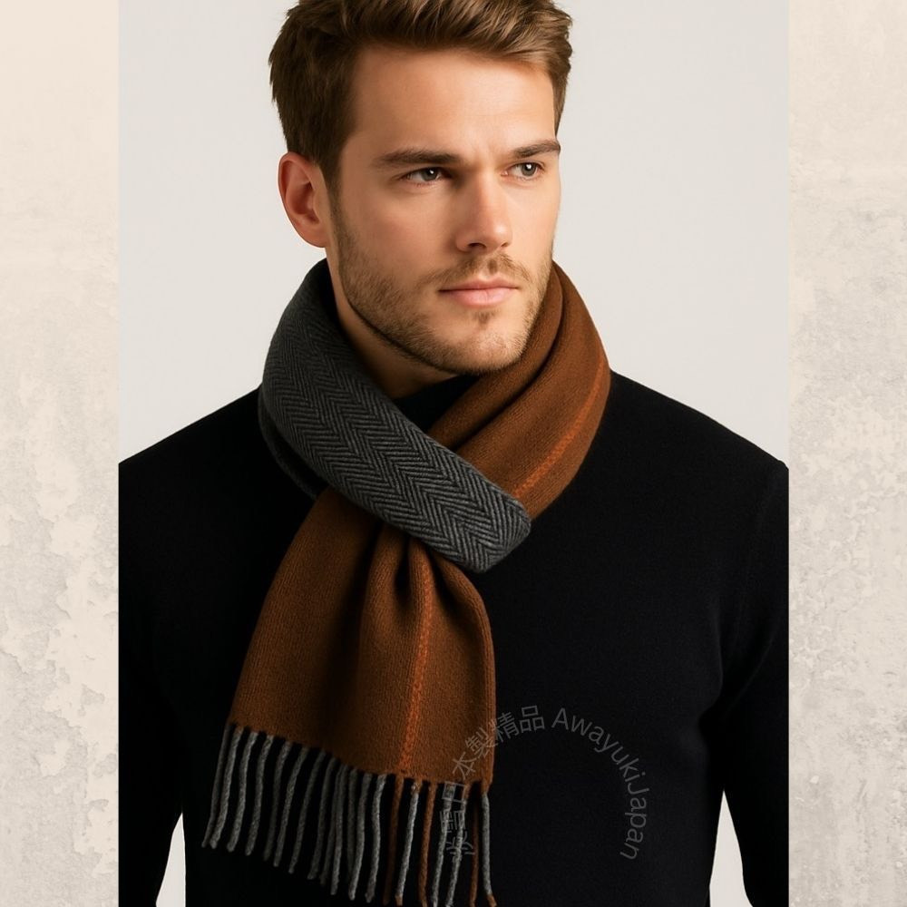 這條圍巾選用日本製高級羊毛(Wool 100%),