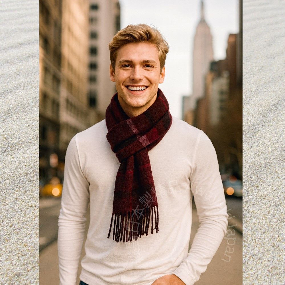 and never needs to shout.” 商品描述: 這條圍巾選用日本製高級羊毛(Wool 100%), 由日本職人以低速織機細緻織造,使纖維保有自然的空氣感與柔軟度。 手感輕盈卻不失厚度,在秋冬季節能溫暖頸間、同時保持俐落線條。 每一道格紋的層次,皆由經驗老到的染織師調整色比, 讓深藍與灰交錯的紋理呈現出「靜謐」與「理性」的平衡。 這是日本織物美學的縮影——不追求誇張,而在細節中見力量。 邊緣經手工收整,細緻的流蘇自然垂墜, 無論搭配大衣或西裝外套,都能展現男性的沉著與從容。 Made in Japan — 由日本職人一線一線編織出的風度。 Kon-kaku no Shizu. Quiet power, timeless style.
