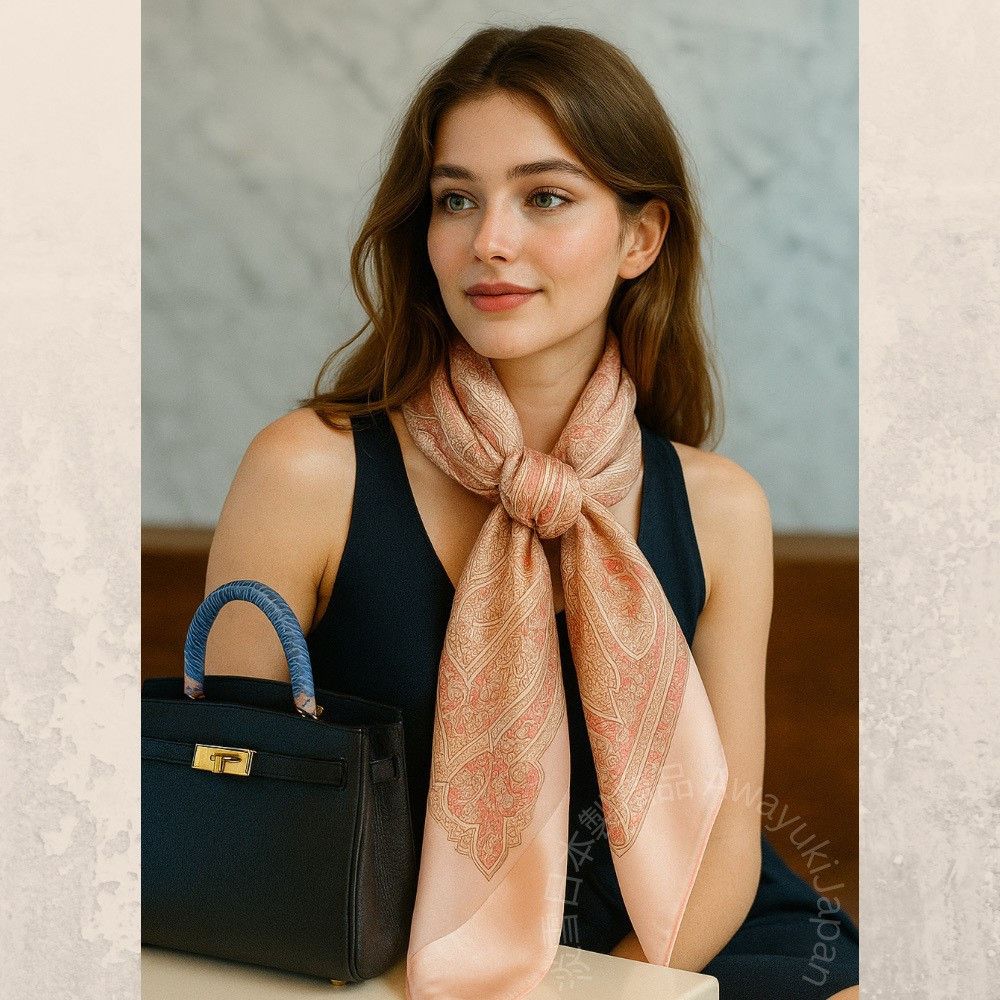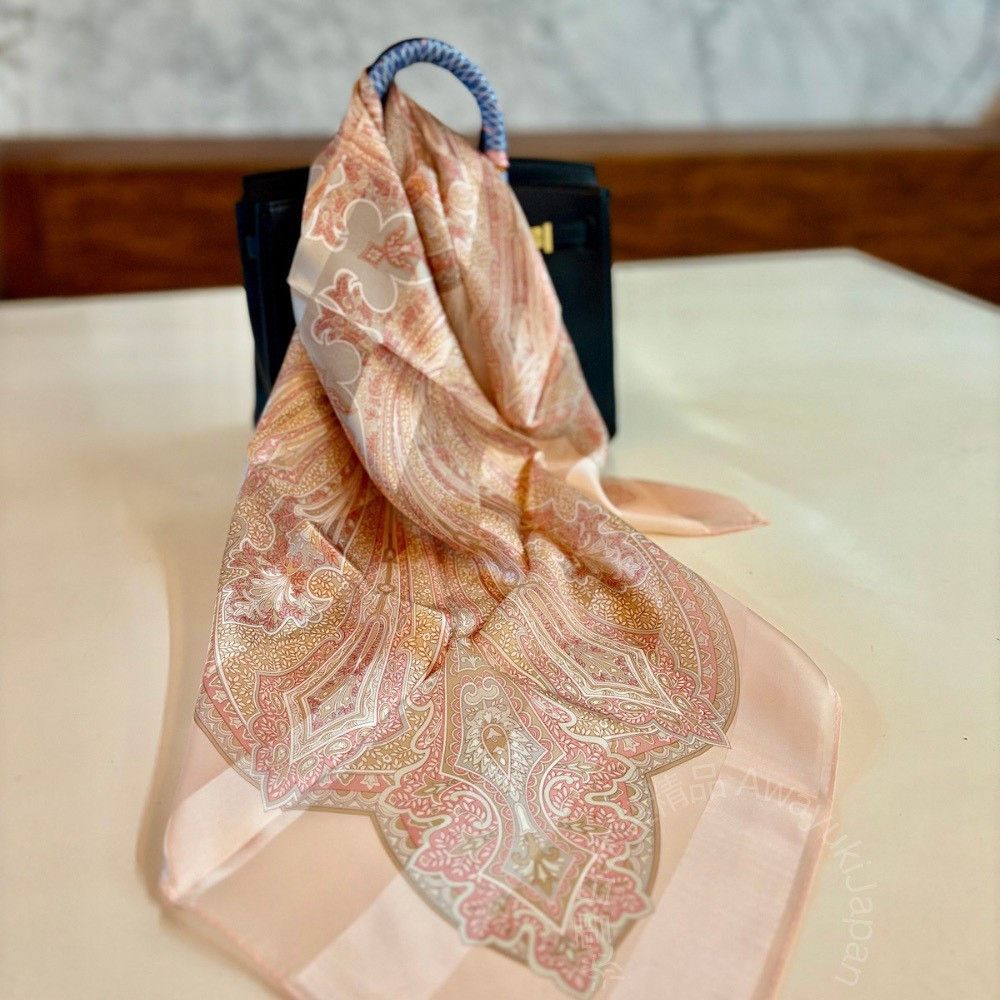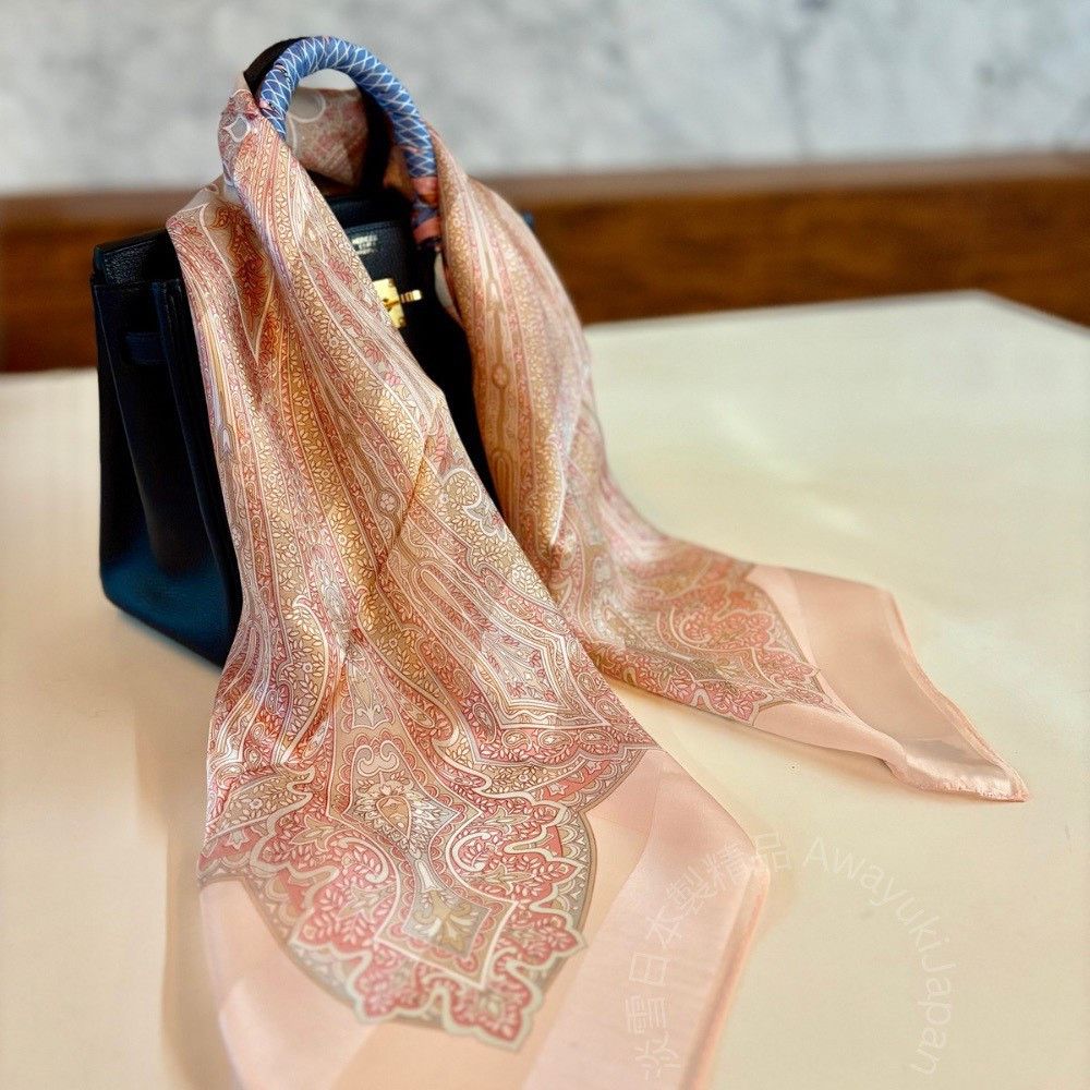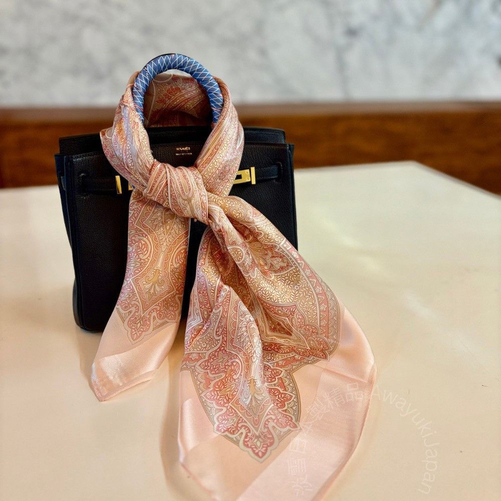 日本製 絲巾_ Éclat de Palais 宮廷之光-曙光橘(88 × 88cm) 絲巾 方形絲巾 大方巾 日本絲巾 9090 披肩