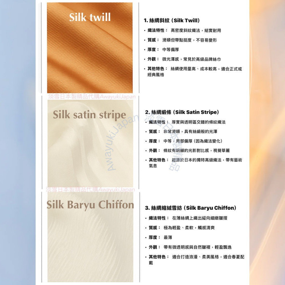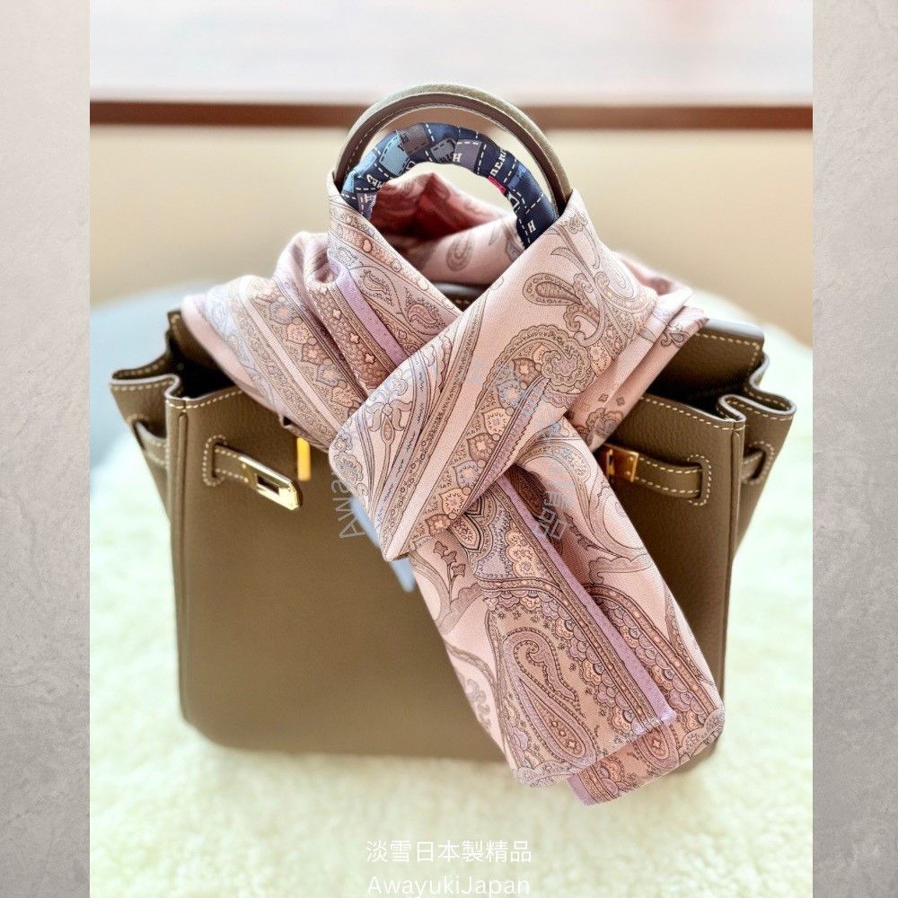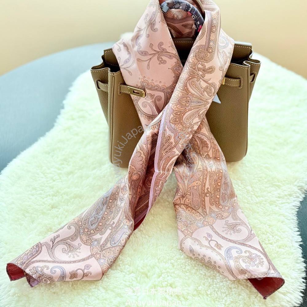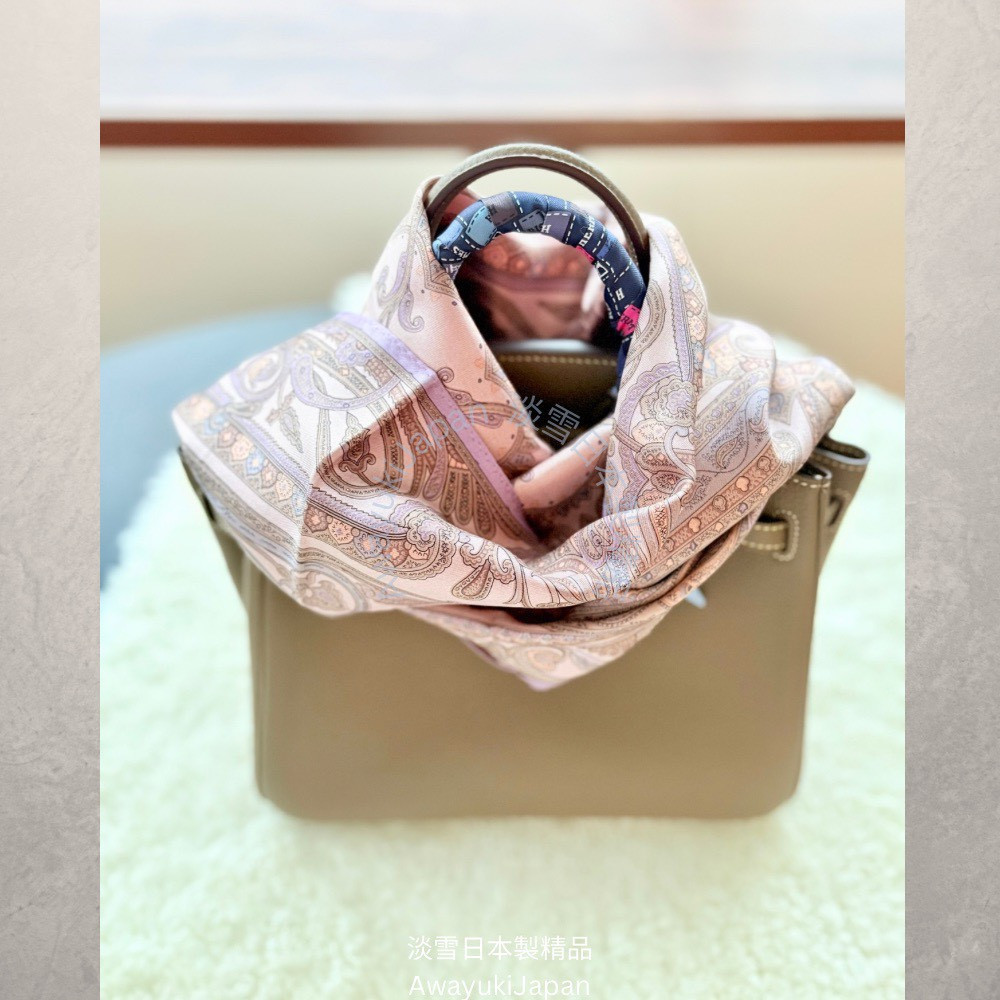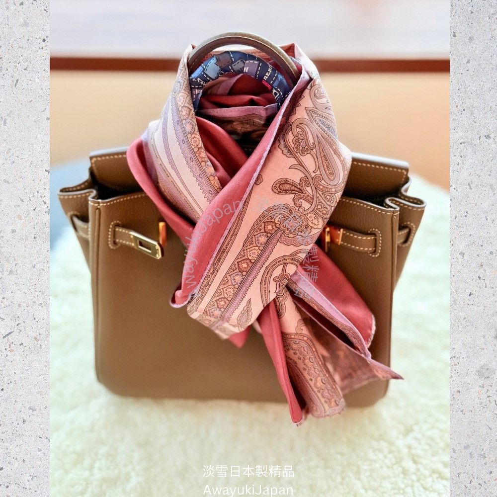 而是一種姿態,一種語言,一種從容地 走進任何場域的力量。 “La vraie élégance est celle qui ne se voit pas.” —— 真正的優雅,是不著痕跡的存在。 ⸻ 玫曜 Rosé Brume_淡粉×薄紫 有些氣場,不必開口。 自信是一種姿態—— 舉手投足間,世界便懂得安靜。 粉與紫的交織,如光與霧的對話,柔和卻不退讓。 這條絲巾,是妳/你不需言語的宣言。 “Elegance is not about being noticed, it’s about being remembered.” — Giorgio Armani ⸻ 商品說明: ✦ 絲綢之光 · 日本職人之手 ✦ 此系列絲巾以「絲綢斜紋Silk Twill織法」織成—— ✨絲綢斜紋 Silk Twill「斜紋」是一種以細膩織法創造立體紋理的絲綢。 它的織造方式是讓經線與緯線以一定間距交錯,使表面呈現細緻斜向紋路(Twill Weave)。