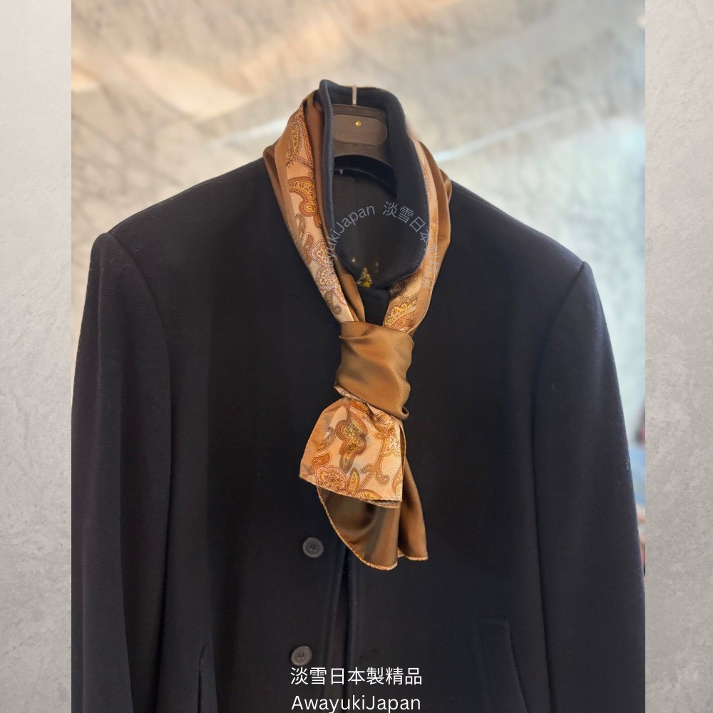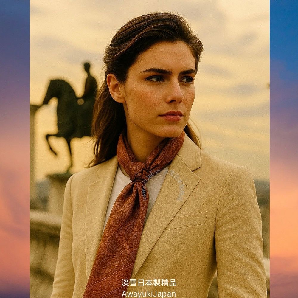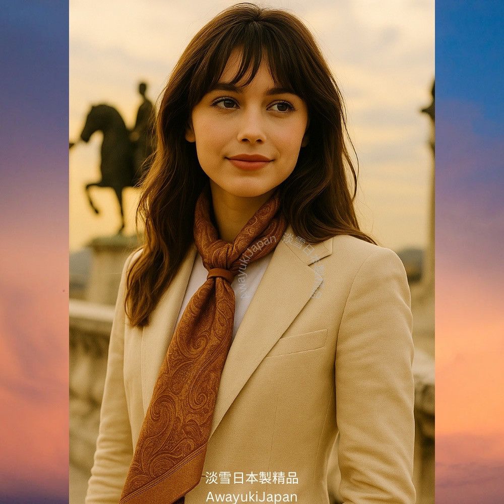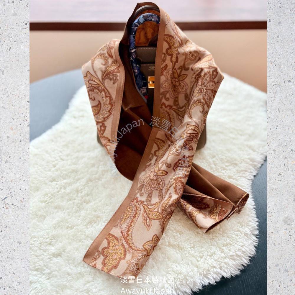 而是一種姿態,一種語言,一種從容地 走進任何場域的力量。 “La vraie élégance est celle qui ne se voit pas.” —— 真正的優雅,是不著痕跡的存在。 ⸻ 琥調 Ambre Classique_焦糖×琥珀 他/她走進房間時,不需任何鋪陳,空氣自然變得不同。 那是一種歷練過的從容,一種懂自己分寸的氣勢。 焦糖與琥珀的光澤,是時間淬鍊出的質感—— 讓人一眼,就看見你的層次與深度。 “Style is when you have nothing to prove, yet everything to express.” — Anonymous ⸻ 商品說明: ✦ 絲綢之光 · 日本職人之手 ✦ 此系列絲巾以「絲綢斜紋Silk Twill織法」織成—— ✨絲綢斜紋 Silk Twill「斜紋」是一種以細膩織法創造立體紋理的絲綢。 它的織造方式是讓經線與緯線以一定間距交錯,使表面呈現細緻斜向紋路(Twill Weave)。