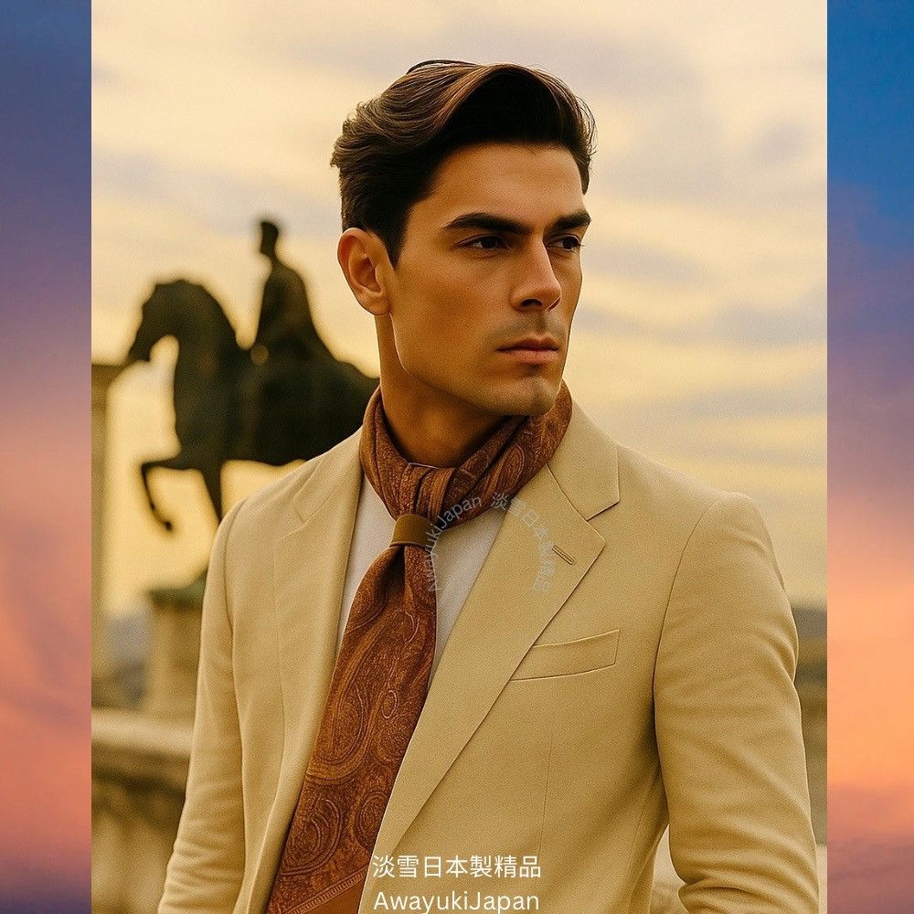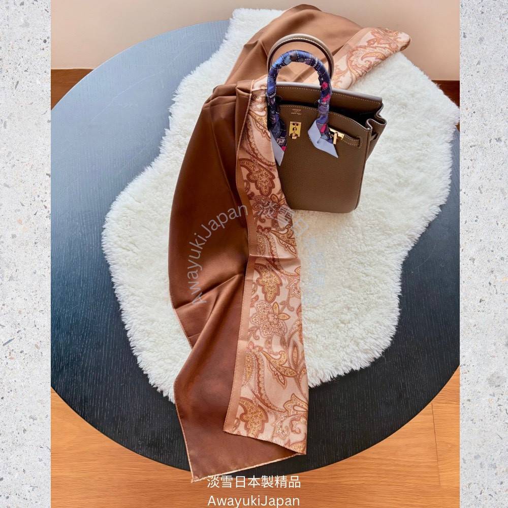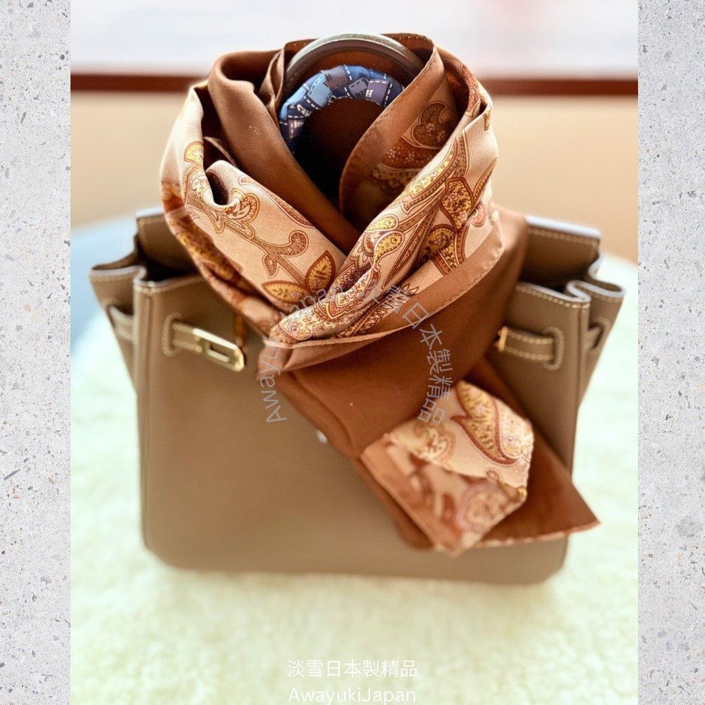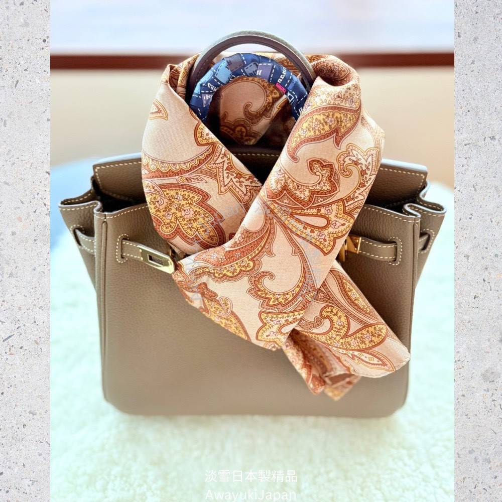 而是一種姿態,一種語言,一種從容地 走進任何場域的力量。 “La vraie élégance est celle qui ne se voit pas.” —— 真正的優雅,是不著痕跡的存在。 ⸻ 琥調 Ambre Classique_焦糖×琥珀 他/她走進房間時,不需任何鋪陳,空氣自然變得不同。 那是一種歷練過的從容,一種懂自己分寸的氣勢。 焦糖與琥珀的光澤,是時間淬鍊出的質感—— 讓人一眼,就看見你的層次與深度。 “Style is when you have nothing to prove, yet everything to express.” — Anonymous ⸻ 商品說明: ✦ 絲綢之光 · 日本職人之手 ✦ 此系列絲巾以「絲綢斜紋Silk Twill織法」織成—— ✨絲綢斜紋 Silk Twill「斜紋」是一種以細膩織法創造立體紋理的絲綢。 它的織造方式是讓經線與緯線以一定間距交錯,使表面呈現細緻斜向紋路(Twill Weave)。