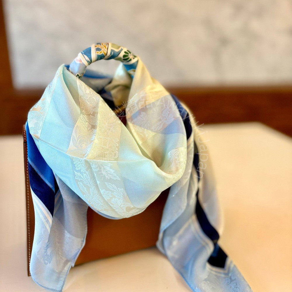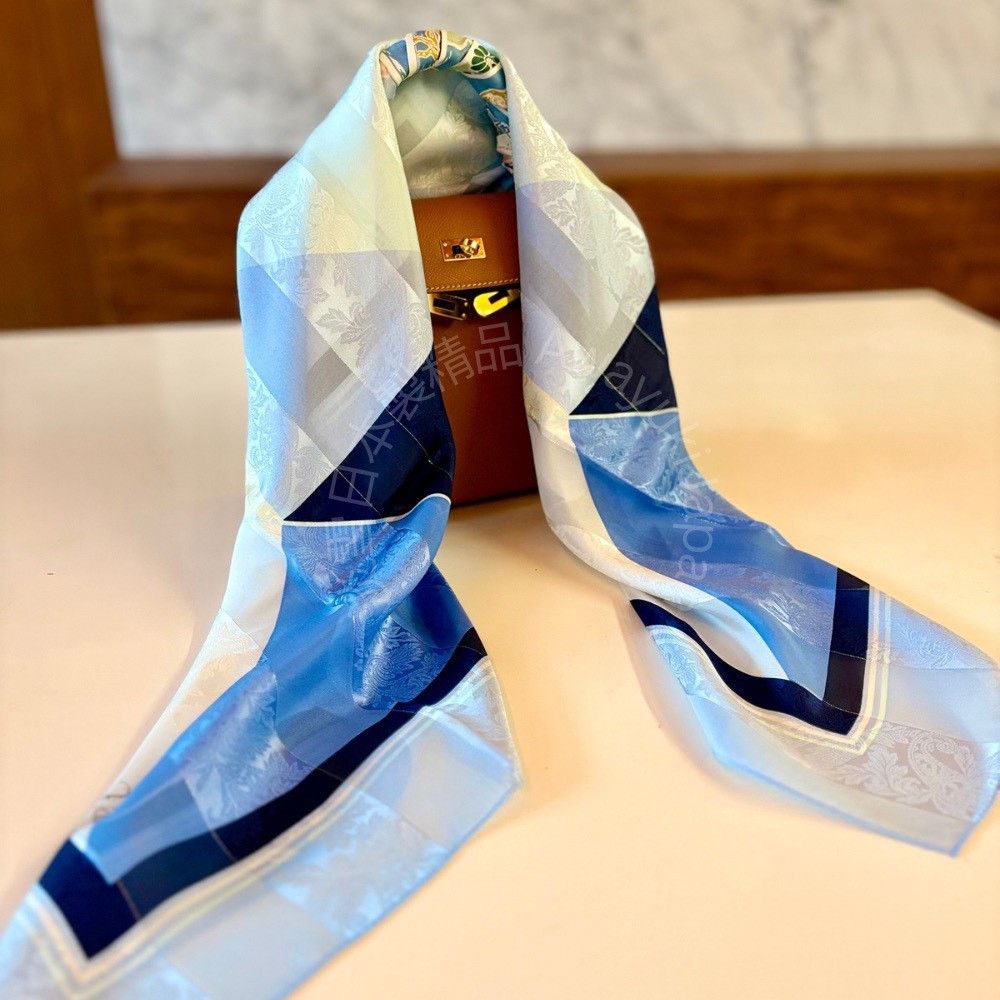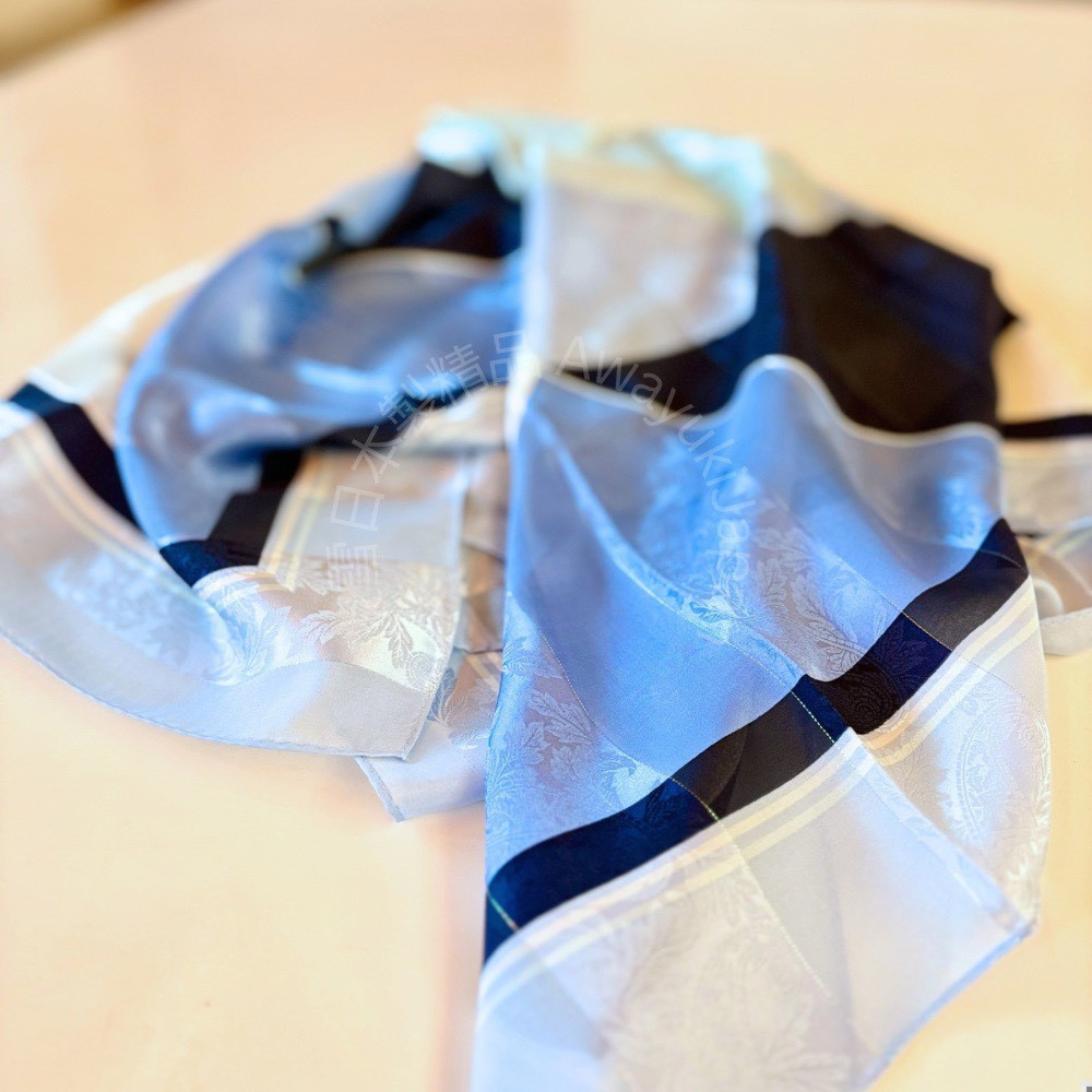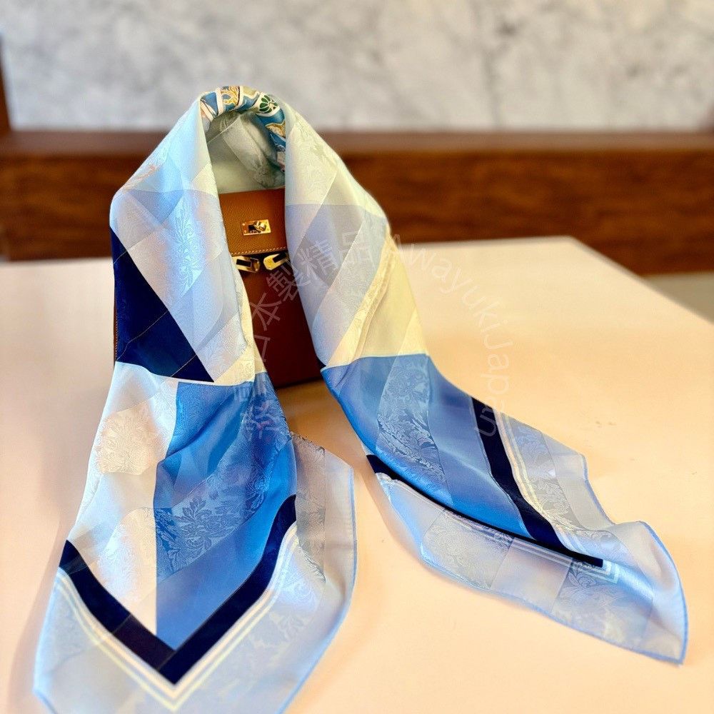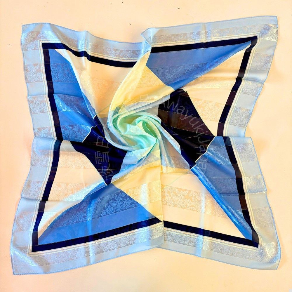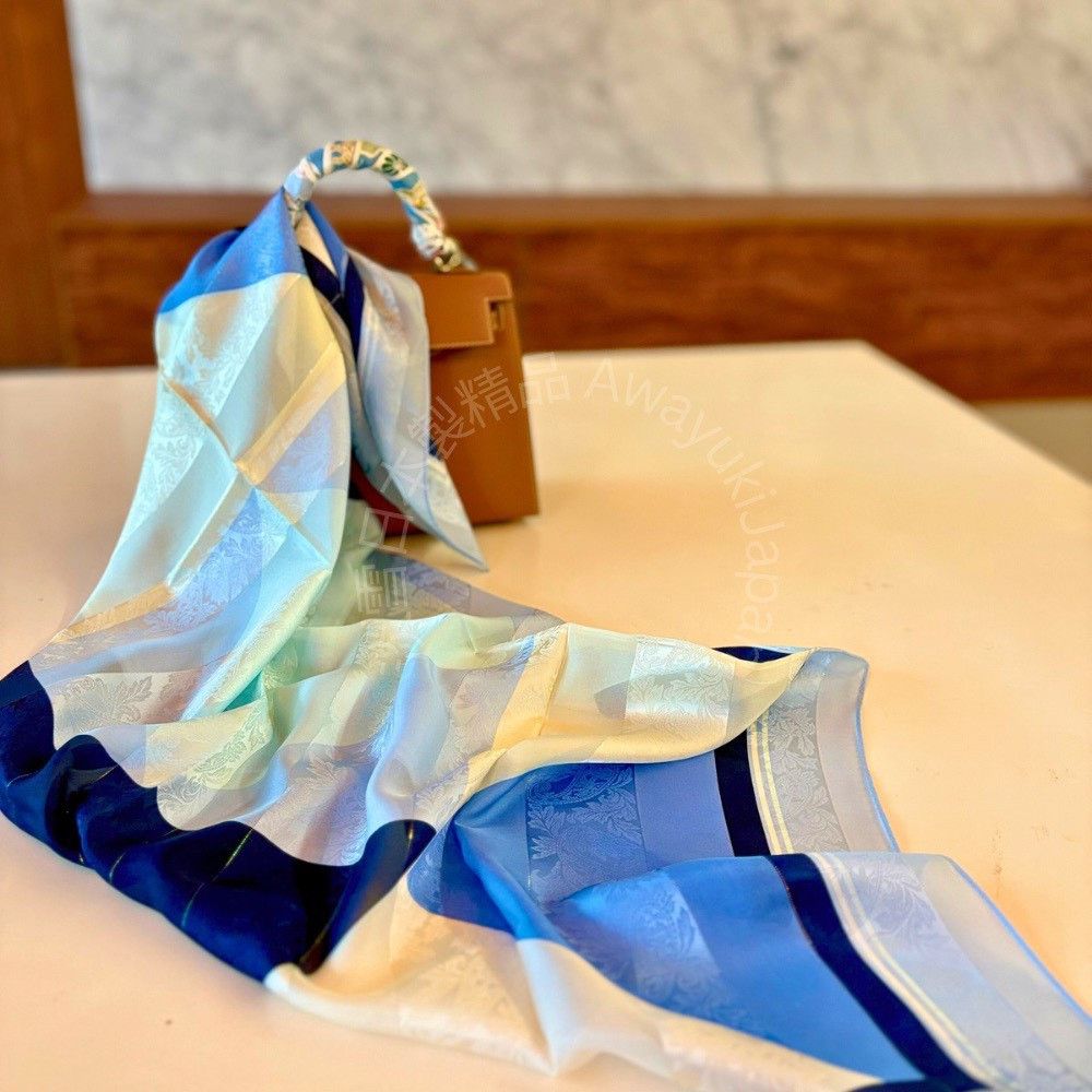 日本製 絲巾_ 光影菱紋Collection Lumières Géométriques-海霧晨藍 Brume Marine (88 × 88cm) 絲巾 方形絲巾 大方巾 日本絲巾 9090 披肩