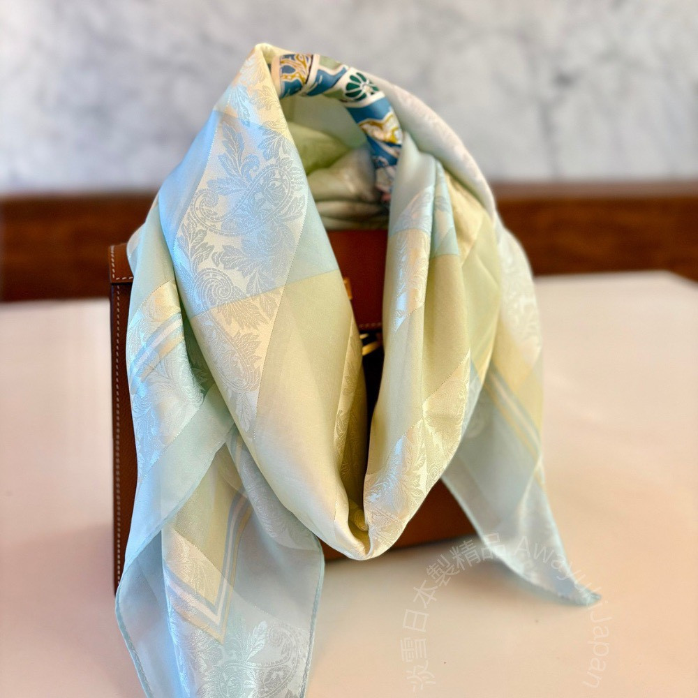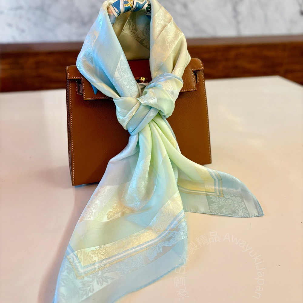 日本製 絲巾_ 光影菱紋Collection Lumières Géométriques-雪映晨光 Clarté Neige(88 × 88cm) 絲巾 方形絲巾 大方巾 日本絲巾 9090 披肩
