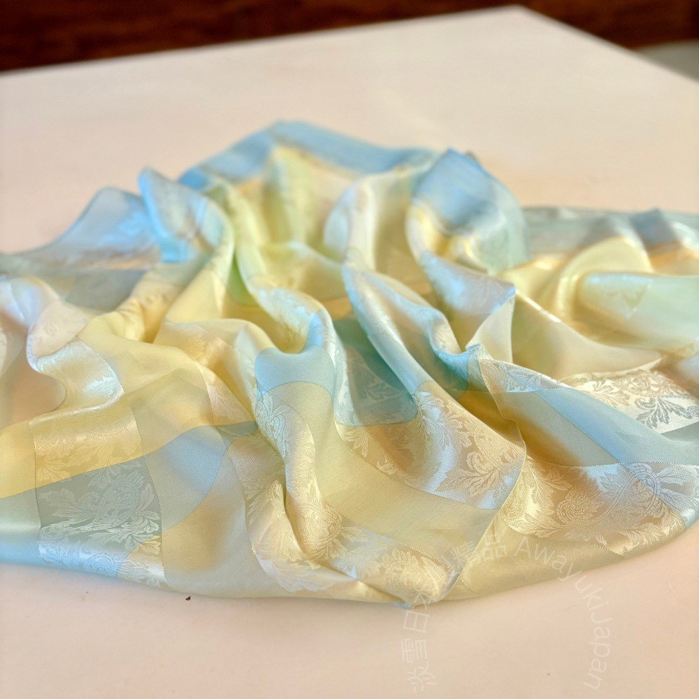 此系列絲巾以兩種極致纖細的日本織工藝交織而成: