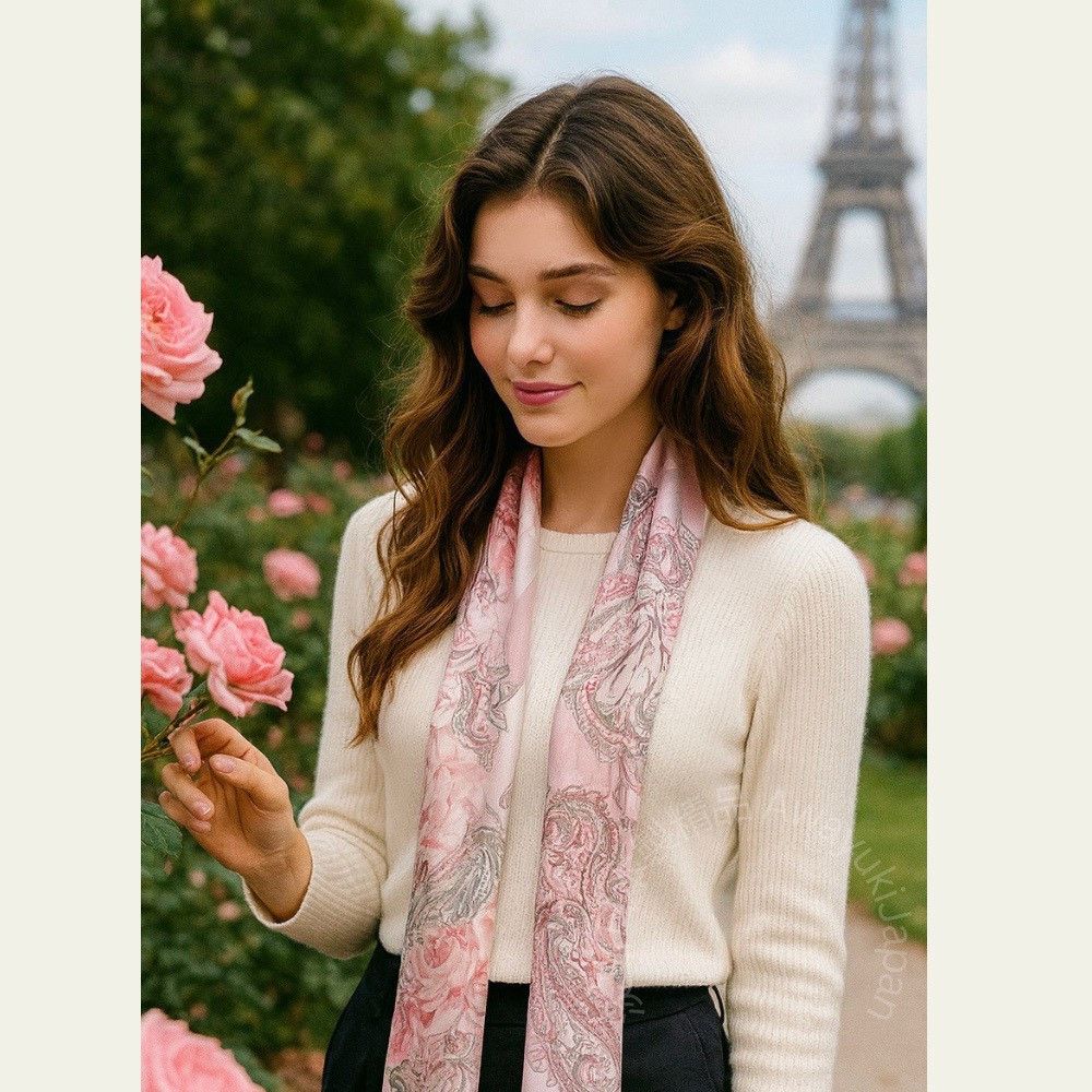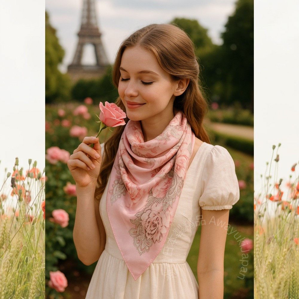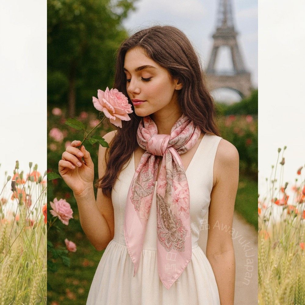 日本製 絲巾_玫瑰花園 Jardin des Roses - 玫瑰粉(88 × 88cm) 絲巾 方形絲巾 大方巾 日本絲巾 9090 披肩