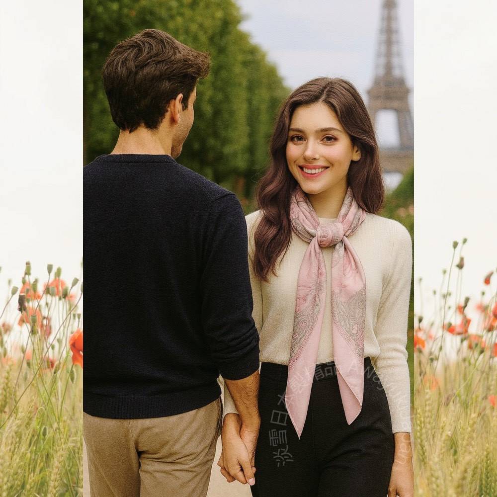都被如此溫柔而深刻地愛著。 Chaque femme mérite un amour qui la fait fleurir. *— 每位女人,都值得一份讓她綻放的愛。 商品說明: 1️⃣ 玫瑰粉 Rose Poudré —「溫柔花園」 Jardin des Roses — Douceur & Tendresse (玫瑰花園・柔情與溫暖) |設計概念| • 粉色花園象徵「被溫柔愛著的女人」 • 代表被珍惜、被呵護、被溫暖擁抱 • 適合喜歡浪漫氣質、柔和穿搭的女性 |色彩氛圍| • 粉玫瑰 × 緞面光澤 • 彷彿晨光落在臉側的那份柔情 • 帶出戀人般的細膩心意 |她在愛裡的模樣| 在這座花園裡,她被輕輕捧著、也被深深疼愛。 粉色象徵「妳值得被好好愛著」的日常浪漫。 ⸻ 2️⃣ 雲藍 Bleu Nuage —「自由花園」 Jardin des Roses — Liberté & Confiance (玫瑰花園・自由與信任) |設計概念| • 藍色花園象徵「被理解與信任的女人」 • 傳達自由、空氣感與從容 • 適合喜歡清新、優雅、低調奢華的女性 |色彩氛圍| • 雲藍 × 微光玫瑰 • 像一片輕盈天空,讓心變得自由 • 彷彿在愛裡,有足夠的空間去做自己 |她在愛裡的模樣| 這座花園的愛不黏人、不綁住, 卻總在她需要時默默站在身後。 在信任裡,她比任何時候都更閃亮。 ⸻ 3️⃣ 霧綠 Vert Brume —「安定花園」 Jardin des Roses — Sérénité & Profondeur (玫瑰花園・安定與深情) |設計概念| • 綠色花園象徵「被深深守護的女人」 • 愛得成熟、安定、值得托付 • 適合喜歡沉穩氣質、內斂優雅的女性 |色彩氛圍| • 霧綠 × 柔光緞面 • 如歲月沉澱後的深情 • 靜靜卻無比踏實的存在感 |她在愛裡的模樣| 在這座花園裡,她不用大聲說愛, 因為她知道——那份深沉的陪伴一直都在。 不同色調的《玫瑰花園》, 象徵女人在愛裡盛開的三種樣貌: 被溫柔擁抱、被理解信任、被深情守護。 願每一位走進淡雪花園的女人, 都能找到屬於自己的那片玫瑰 ⸻ 材質說明 — Material ✔ 日本製 100% 絲質 柔滑細膩、觸感輕盈,佩戴舒適不厚重。 ✔ 色澤飽滿清透 印花採用多層次色版處理,使亮藍與金黃呈現自然光澤。 ✔ 88×88cm 經典尺寸 多用途:頸巾、頭巾、包包點綴、髮帶、外套領口修飾皆適用。 ⸻ 穿搭建議 — Styling Tips ・冬日點亮氣色: 搭配米白、奶茶色、灰色外套,能讓臉部明亮度提升。 ・優雅脖間系法: 簡單單結或三角斜披,能展現絲巾的亮藍果實圖案。 ・春夏輕盈穿搭: 綁於草編包、白襯衫領口或髮帶,營造度假般的清新感。 秋冬輕盈穿搭 — Autumn/Winter Light Styling ・亮色點綴大衣 將絲巾以三角形輕披在大衣內領口,只露出一抹亮藍與金黃, 能在深色外套間增添光亮感,讓秋冬穿搭更有層次也更顯精神。 ・保暖不厚重的溫柔感 88×88 的輕盈絲質能自然順著領口垂下, 即使在秋冬多層次穿搭中也不會造成壓迫, 呈現 輕、亮、暖 的視覺效果。 ・與針織的完美搭配 無論是米白、奶茶色或深灰針織上衣, 絲巾皆能成為視覺焦點,讓整體氣質更柔和清新。 ・冬日提亮氣色 亮藍與金黃的組合能讓臉部明亮度提升, 是秋冬最實用的「氣色絲巾」。 ・多功能配件: 也可綁於手提包手把、作為胸前亮點,創造法式色彩層次。 ⸻ 尺寸:88 × 88cm 本商品尺寸以製作用樣品平放丈量之實測值為準。 由於職人手工製作的特性,實際成品可能會有約 1〜2 cm 的細微誤差,敬請理解與包容。 ⸻ 規格: ■ 產地:日本製 ■ 材質:100% 絲(Silk) ■ 織法:絲緞條紋織(Silk Satin Stripe) ■ 染製方式:手工捺染(Hand Print) 《關於日本職人手捻染》 每一條絲巾皆由日本職人以傳統