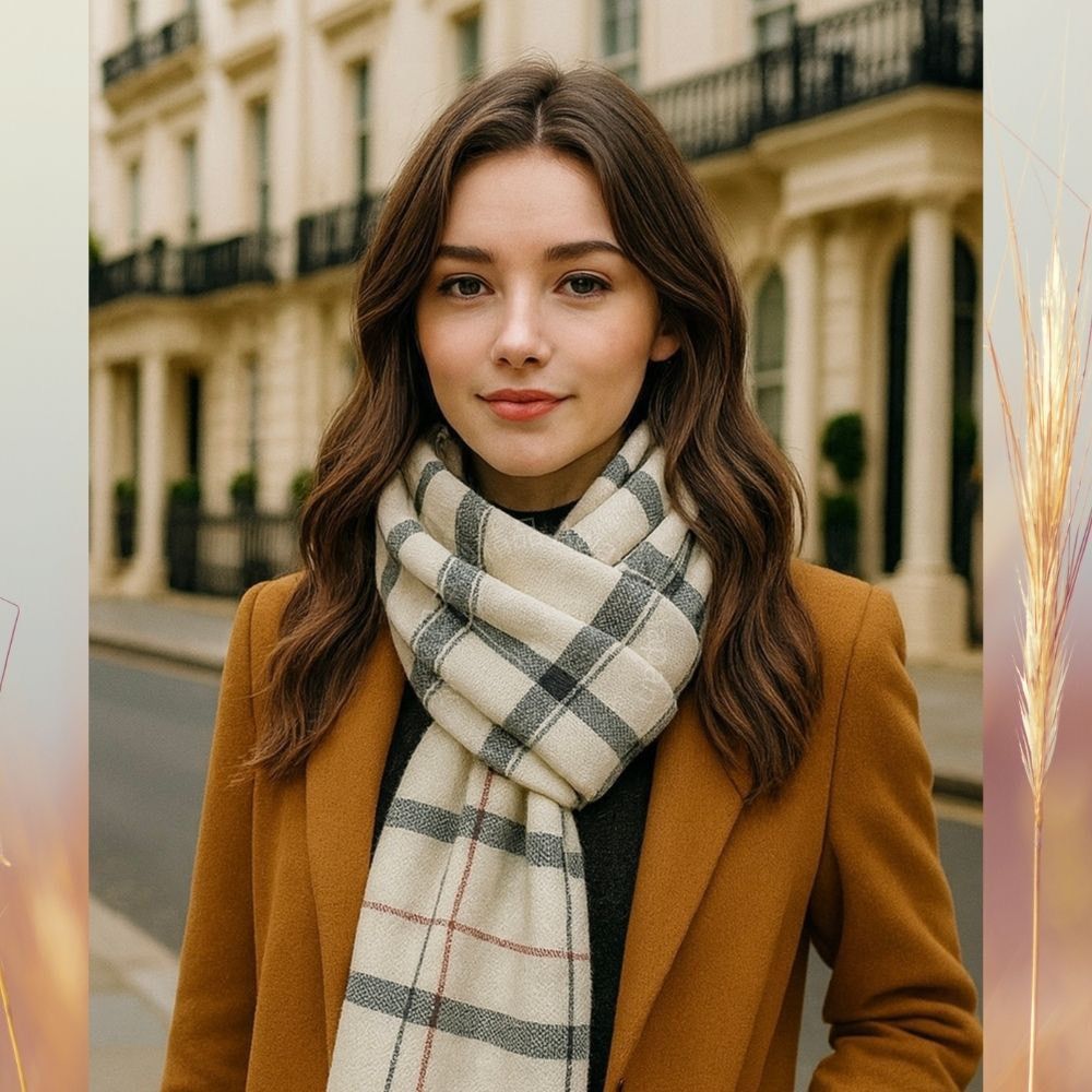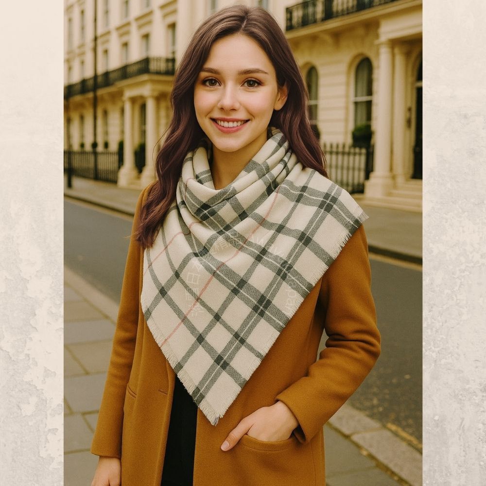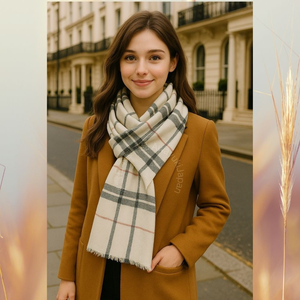 日本製 圍巾_倫敦奶霜經典格 London Crème Classique披肩 長型圍巾-奶霜白(80x196cm) 披肩 女生圍巾 日本圍巾 日本披肩 保暖圍巾 英倫風
