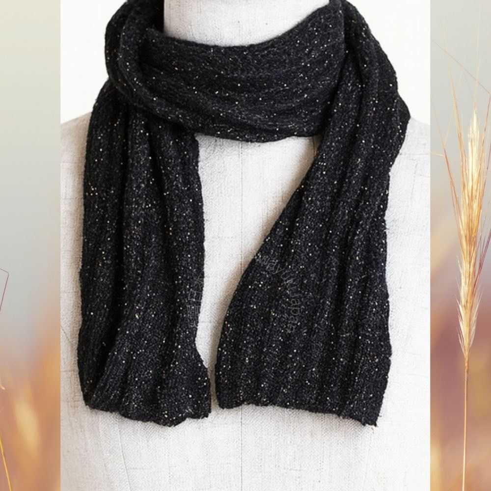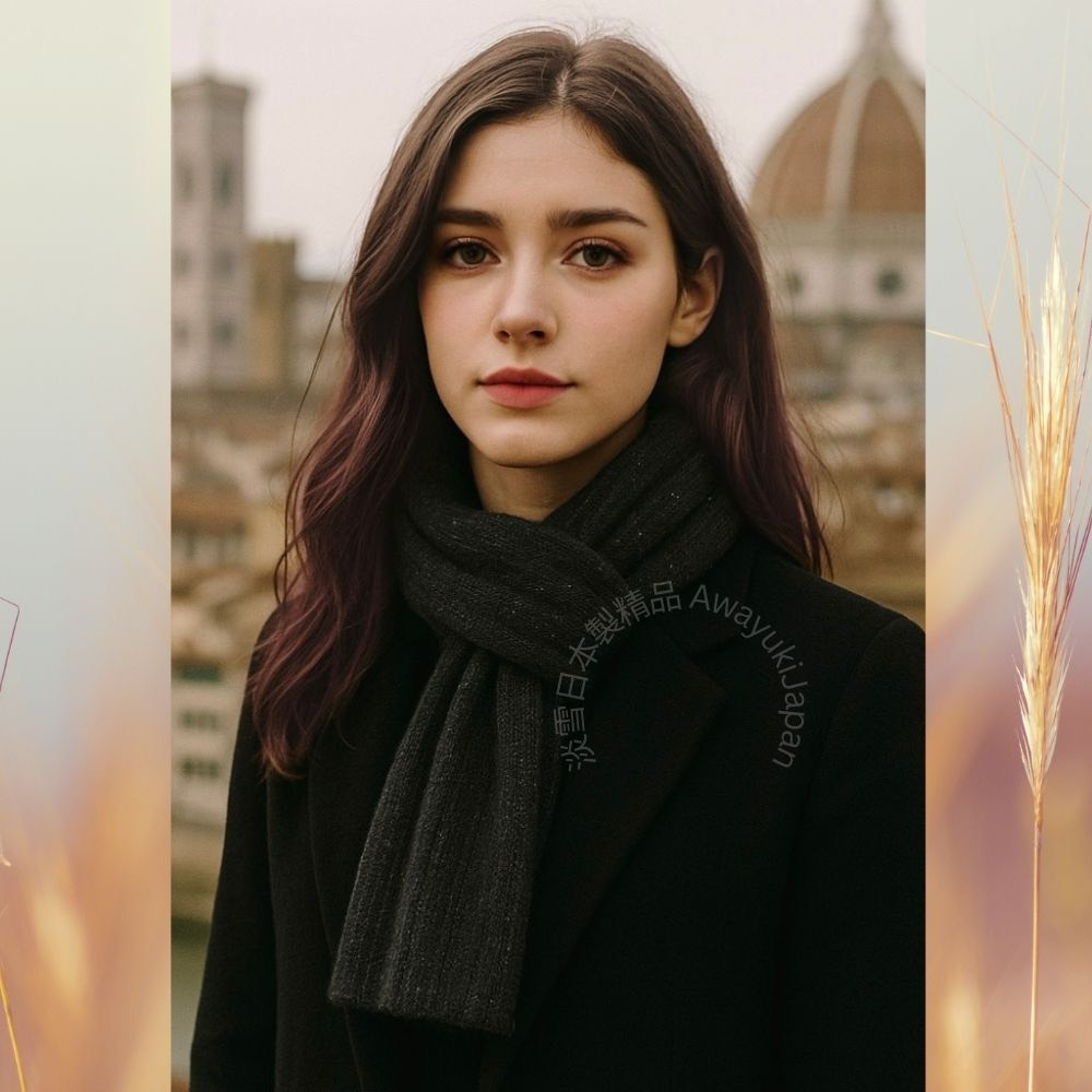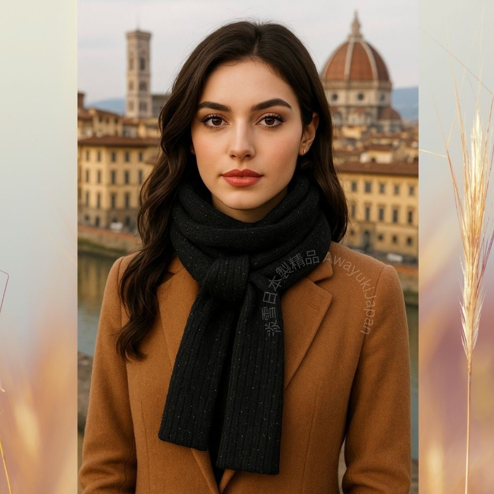 日本製 圍巾_ 柔暖呢光 Douce Laine Lumière長型圍巾-夜幕黑 Noir Nuit (12x230cm) 脖圍 女生圍巾 日本圍巾 日本保暖圍巾 閃閃圍巾 羊毛圍巾