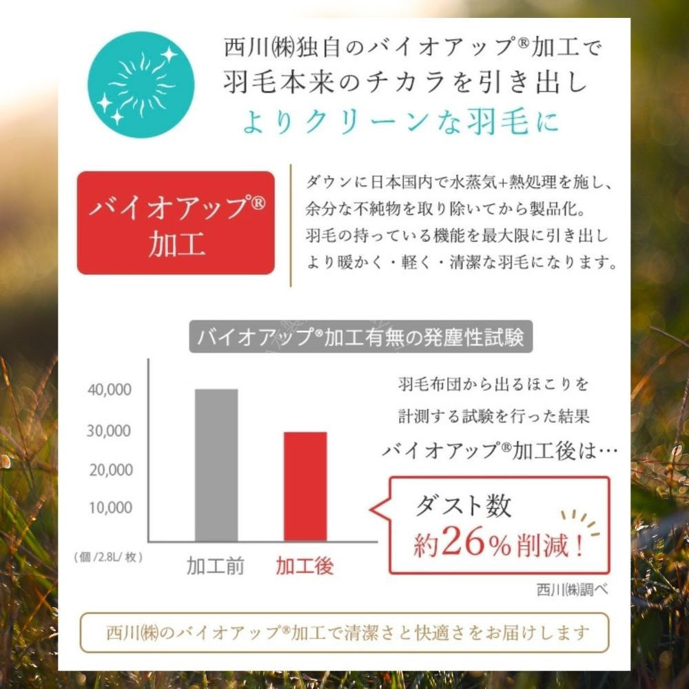由西川株式會社全程於日本國內完成「洗淨 → 充填 → 縫製 → 檢驗」,
