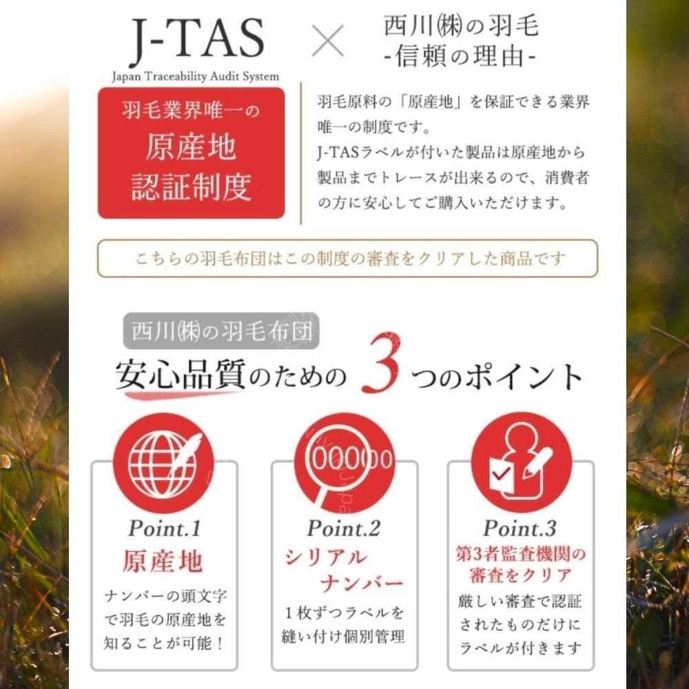 J-TAS 是選擇西川羽絨被的重要信任依據。